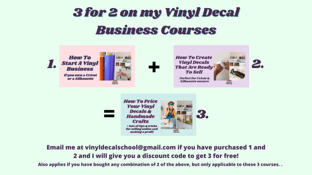 3for2 on my Vinyl Decal Business courses. See pictures for details!
